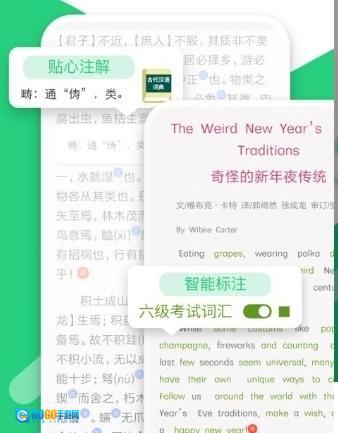 在阅读的过程当中可以进行智能标注,从而在阅读中积累字词