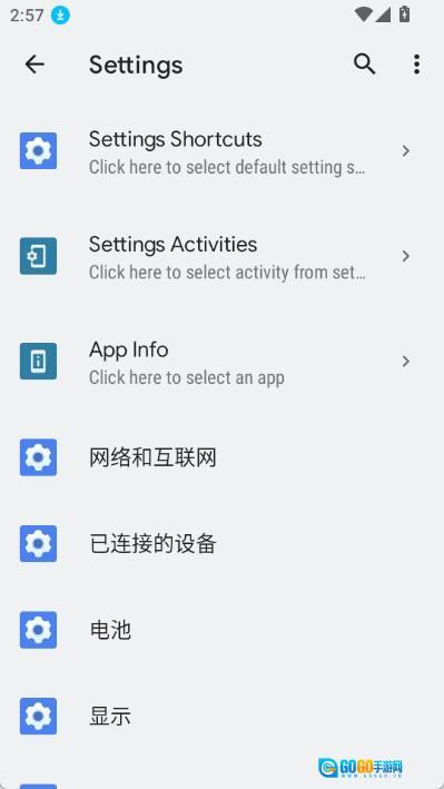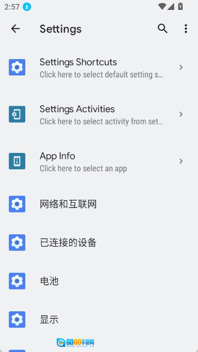 3. 设置:为Android系统的各项设置选项以及默认应用程序创建快捷方式。