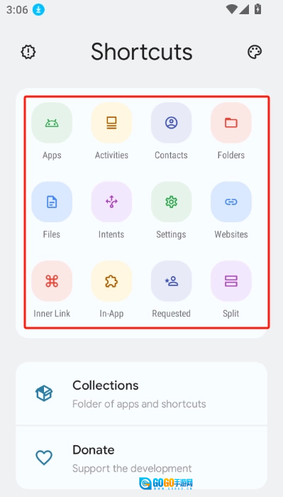 打开 Shortcut Maker 应用程序。挑选你希望创建快捷方式的类别,像活动、文件或者设置都可以。