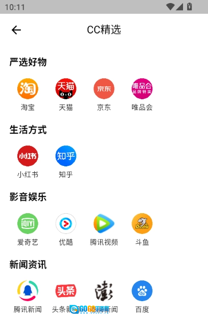 1. 启动CC浏览器后,您将进入主页界面,这里设有“cc精选”“cc扫描王”以及“生活服务”等板块。