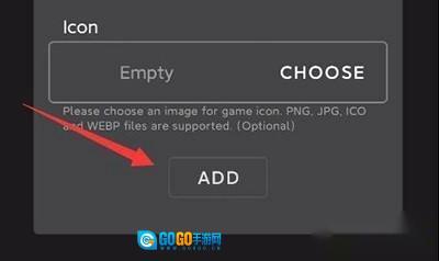 6、第四个是游戏图标,同样可以不填,直接点击最下方的“ADD”即可。