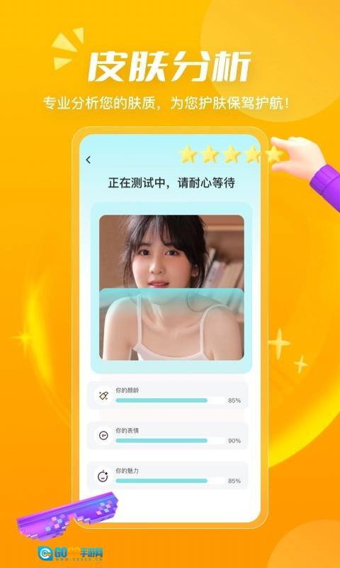 1、依据人脸各部分的比例进行自动评分,并第一时间把颜值评估报告展示给用户。