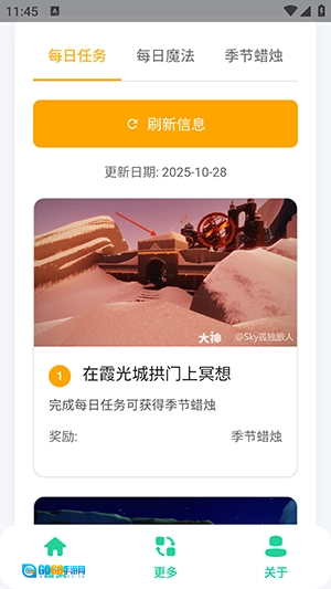 光遇攻略助手的攻略数据大约在每日凌晨1点半左右自动更新,为玩家提供每日任务、季节蜡烛、红石碎片等详细的攻略信息。