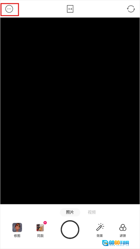 1、第一步先打开foodie相机,进入拍摄界面后,找到左上角的三个【…】图标并点击,具体位置可参考下图;