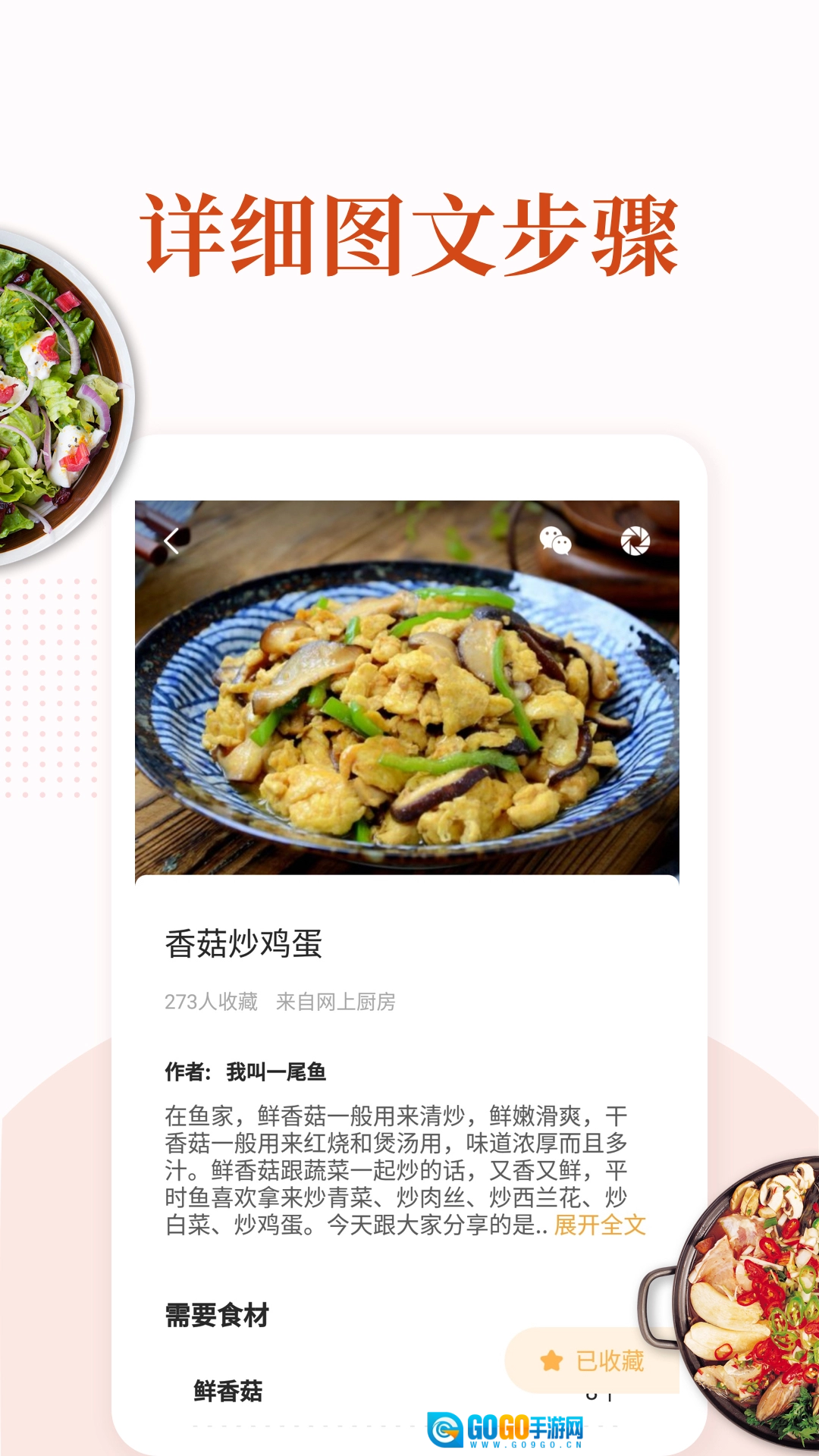 3、家常菜做法大全精心挑选用餐食材,搭配详尽的制作步骤,提供完善细致的图文教程,助力网友轻松品尝到美味佳肴。
