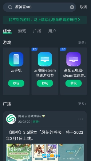 1、完成软件安装后打开应用,即可进入首页。这里汇聚了海量热门游戏,您可以通过滑动浏览或搜索查找的方式,轻松定位到想要玩的游戏。