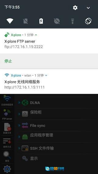 4、这两个功能需要点击左侧的FTP Server和lan功能,之后通知栏就会显示通知图标了。