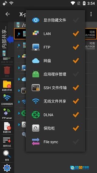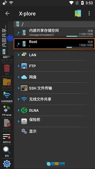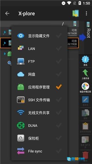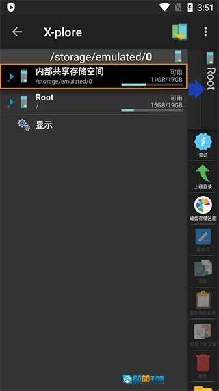 1、启动X-plore文件管理器,点击界面右上角的三点图标,