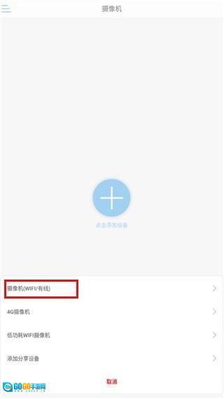 1、首先开启摄像头热点,把手机连接到该热点上,接着打开相关应用,然后点击添加设备的选项。