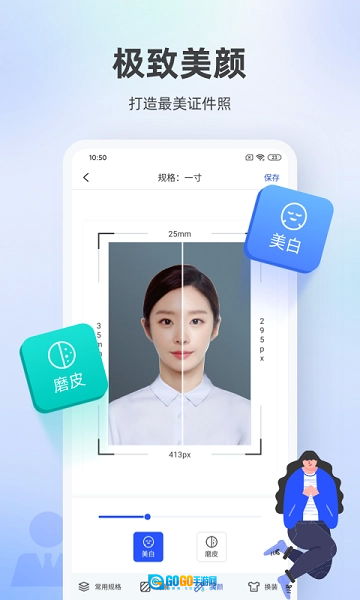 1、证件照相馆提供自定义美化等级的功能,以此确保每张照片的颜值都能符合要求。