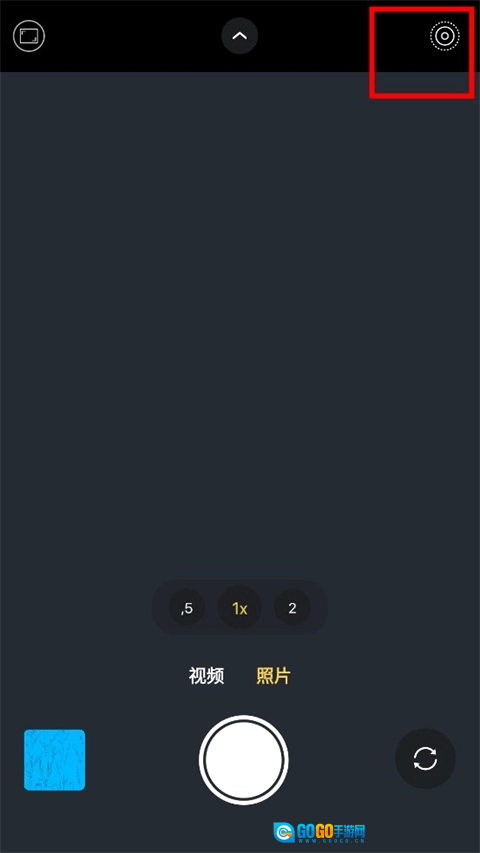 1、打开进入相机界面,首先点击右上角的【设置】选项,进入功能设置页面。