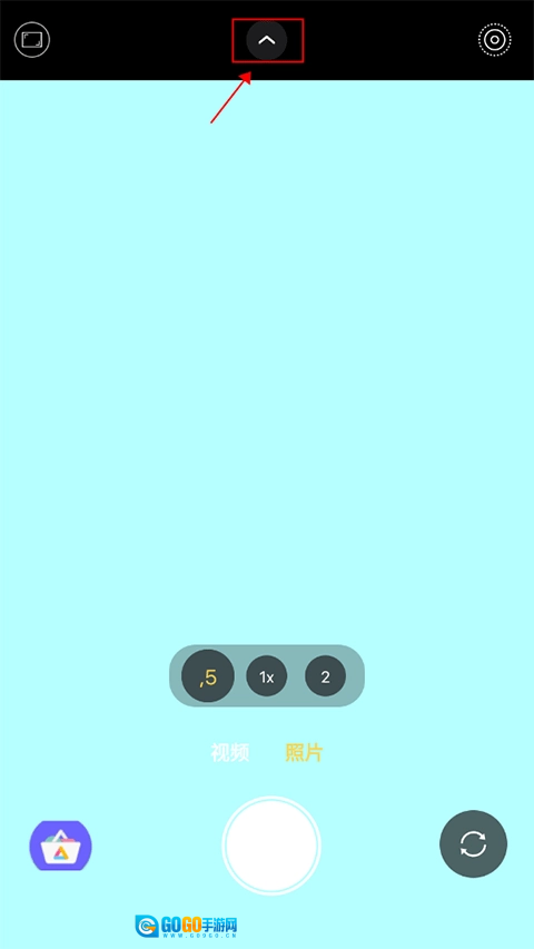 1、处于相机主界面时,点击界面上方的“v箭头”图标,触发功能版块展开。