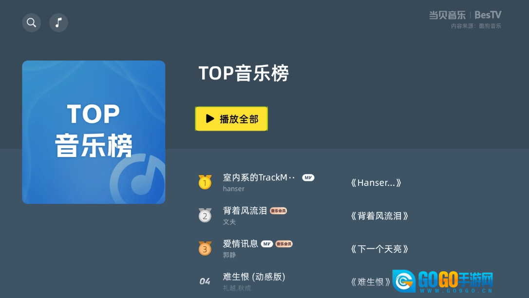 3、当贝音乐整合了丰富多样的音乐资源,涵盖流行、摇滚、古典、民谣、嘻哈等不同风格。