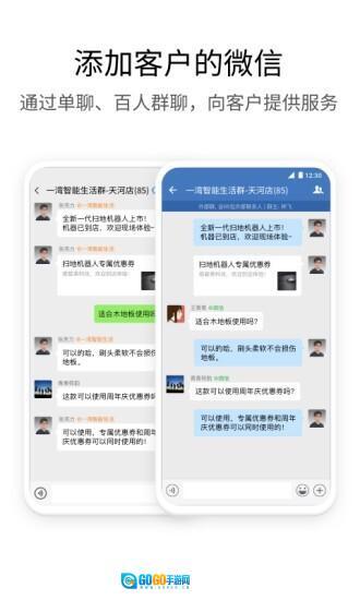 1、Wecom能够添加客户的微信,借助单聊或者群聊的方式为客户提供服务。