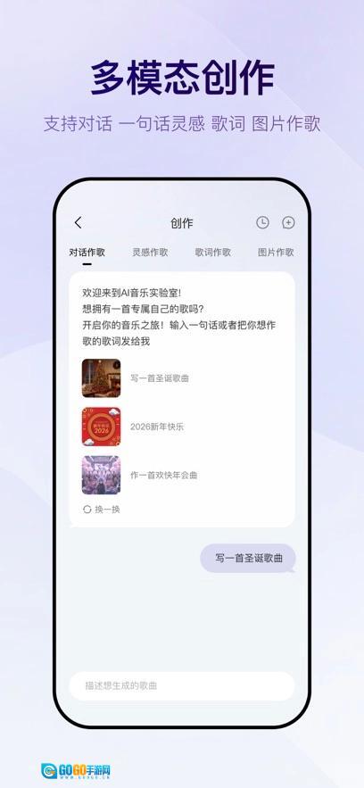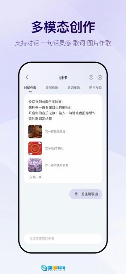 多模态输入:可通过文字灵感、歌词、图片等多种形式来触发创作。