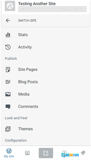 4、现在可以点击“继续”按钮继续操作,之后就能看到应用仪表板了,这里就是您通过移动应用管理WordPress网站的地方。