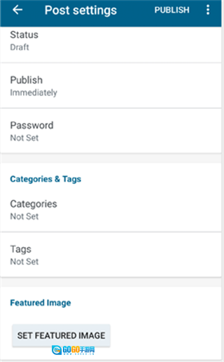 5、这会打开帖子设置菜单。在这个菜单里,您能够添加类别与标签、设置精选图像,还可以修改帖子状态以及调整其他相关选项。