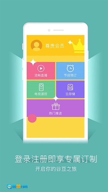 1、注册登录:用户打开谷豆TV应用后,点击“登录/注册”按钮,通过手机号完成注册与登录操作。
