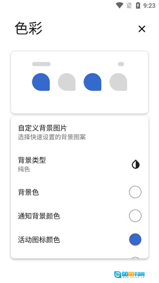 3、在色彩功能板块里,用户能够自行设置背景颜色、文本颜色以及图标颜色。