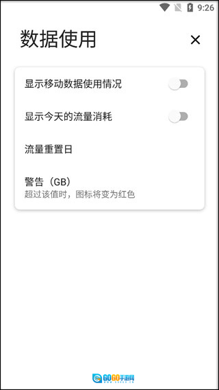 4、在数据使用功能板块里,用户能够开启显示移动数据使用情况以及流量消耗量的功能。