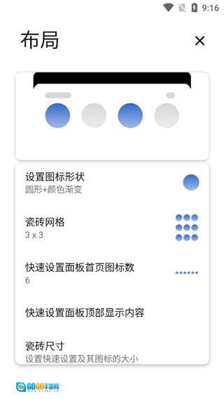 2、这里面配备了十分丰富的页面设置选项,你能够自行挑选,像图标形状、启动通知分类、显示网速、最多分组通知数等都包含在内。