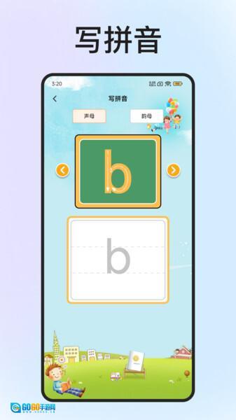 3、拼音书写指导:通过展示拼音在四格三线中的书写规范,助力学习者掌握正确的书写方法。
