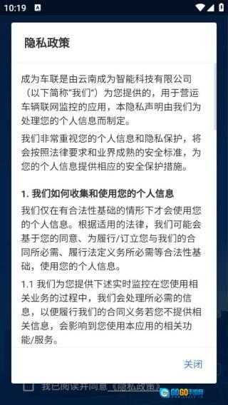 1、安装软件并打开后,会弹出隐私政策界面,仔细阅读相关内容后,点击关闭按钮即可。