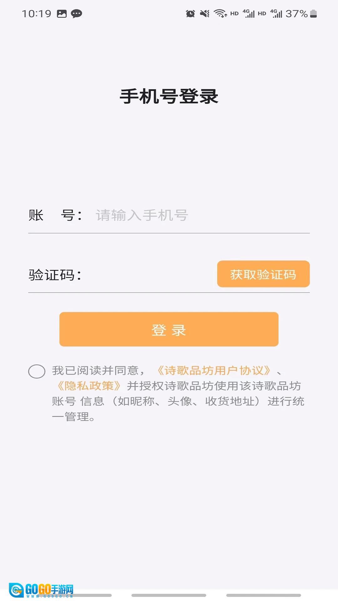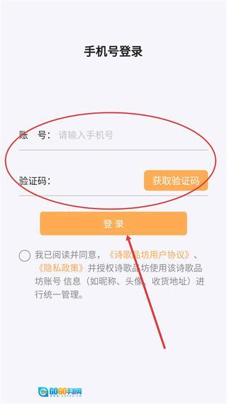 1、点击【账号】对应的输入框,输入要登录的手机号码;接着点击【获取验证码】按钮,等收到短信验证码后完成登录操作。
