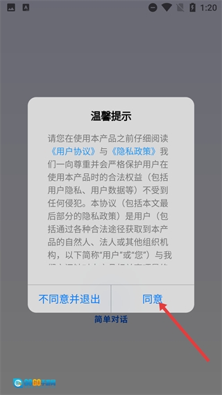1、仔细阅读《用户协议》和《隐私政策》,点击【同意】按钮后,即可进入登录界面。