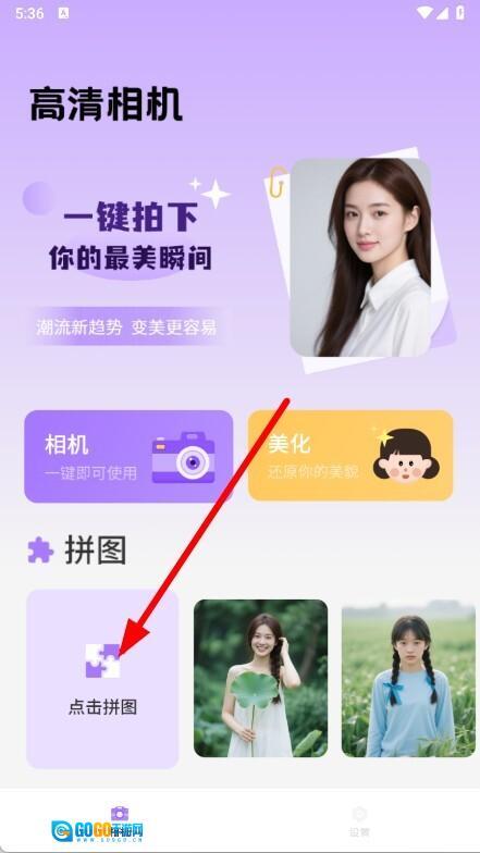 2、进入高清相机页面后,点击拼图选项,即可跳转至选择图片页面。