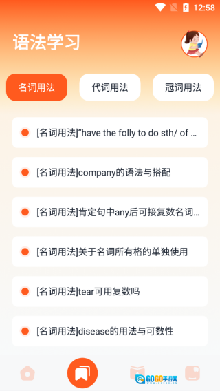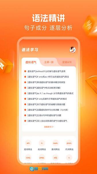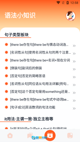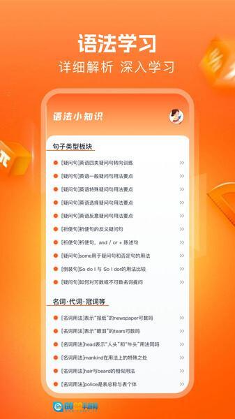 4、提供语法小知识学习支持,可按各类句子类型进行筛选,打造高效自学平台。