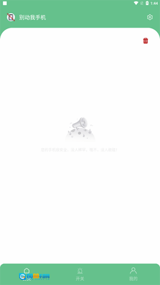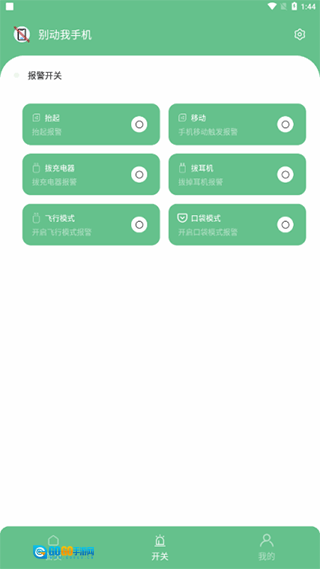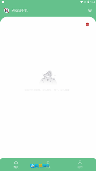 1、安装好“别动我手机”后,进入首页,你可以点击右上角的设置,设置触发后的报警方式。