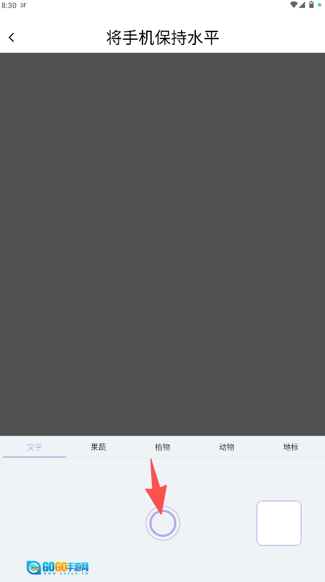 3、在拍摄界面把手机保持水平状态,对准目标后点击底部的圆形拍照按钮,就能完成识别。