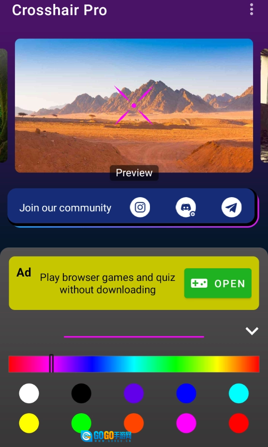 Crosshair Pro准星辅助器是一款实用性极强的游戏辅助工具,能助你轻松提高射击游戏的瞄准精度!不管是FPS、TPS类型的游戏,还是其他射击类游戏,crosshairpro准星辅助器手机版都可提供多样的准星样式以及自定义设置功能。它操作简便,支持实时调节准星的颜色、尺寸与透明度。crosshairpro准星辅助器最新版还能够依据游戏场景智能地推荐准星模式,让你的瞄准更加精准,赶紧来体验吧!