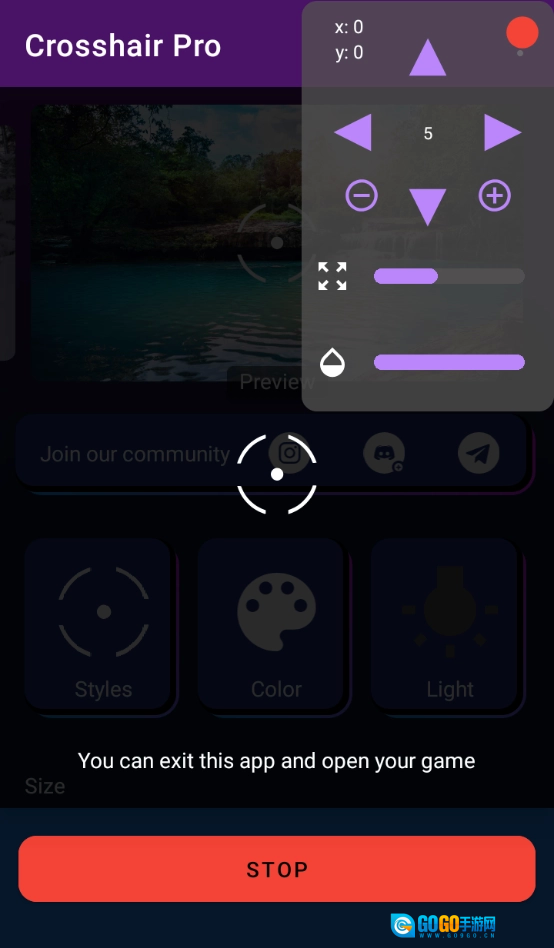 可以按照自己的需求设定十字准线的尺寸、颜色和透明度,并且能够随时随地方便地调整屏幕上的十字准线。
