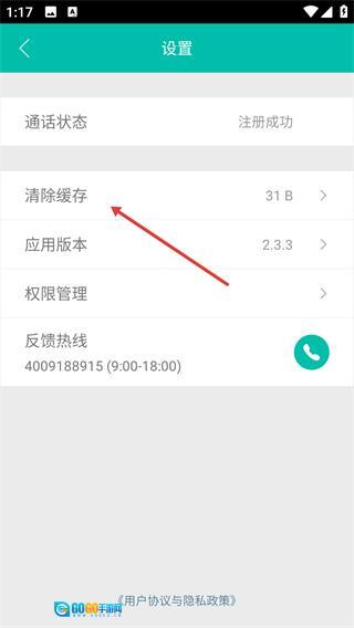 3、进入设置界面后,点击【清除缓存】选项,此时会弹出确认是否清除缓存的提示框。