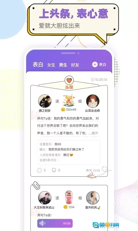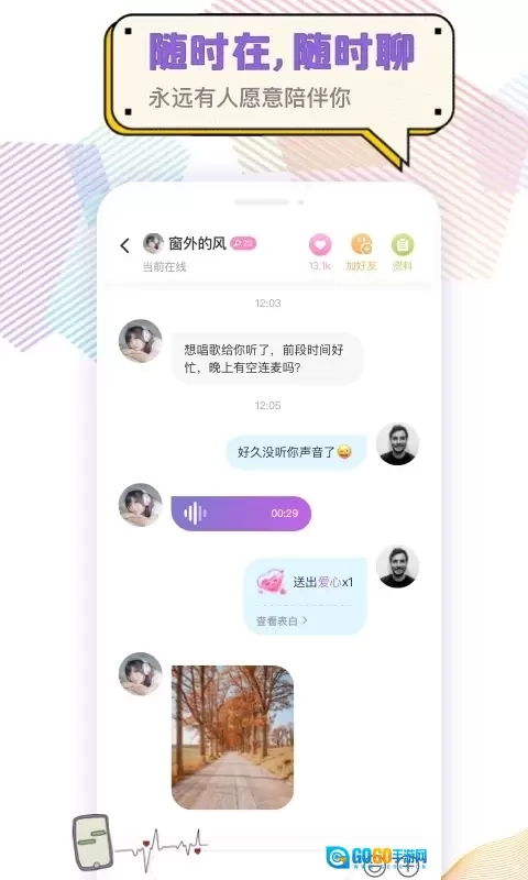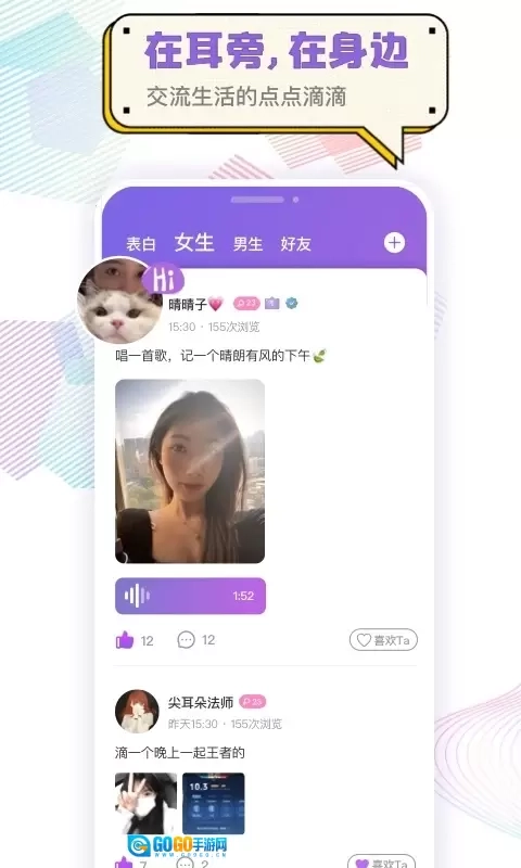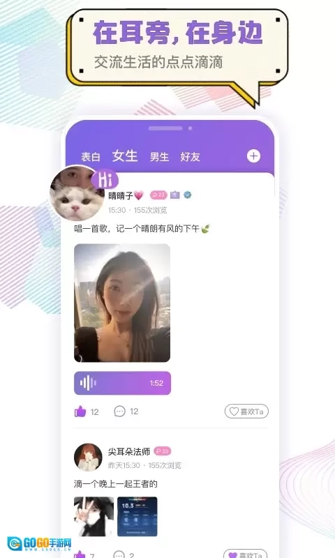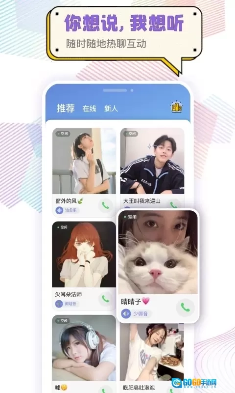 3、心动的声音 语音聊天能让用户邂逅触动内心的声音,成为声控用户的福利与知音。