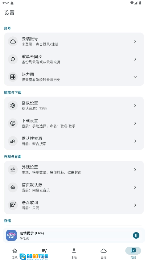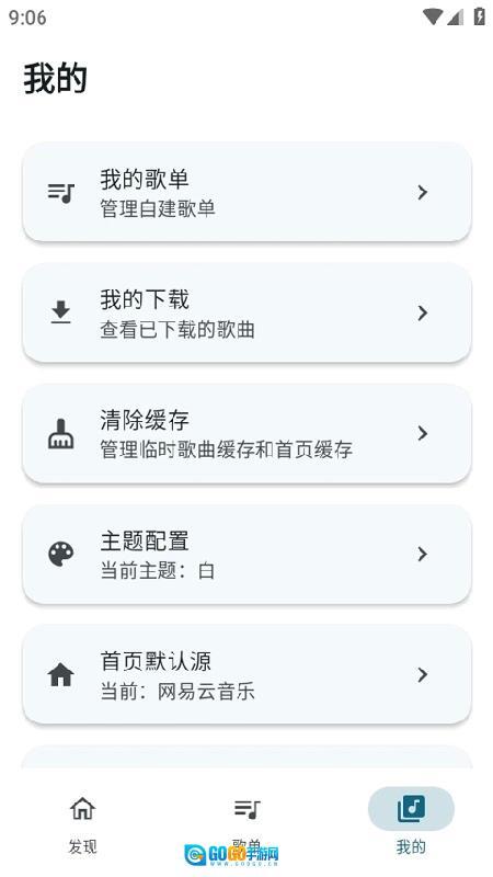 7、进入“我的”设置中心,可对播放音质、缓存路径、歌词显示样式进行调整,从而自定义App的使用体验。