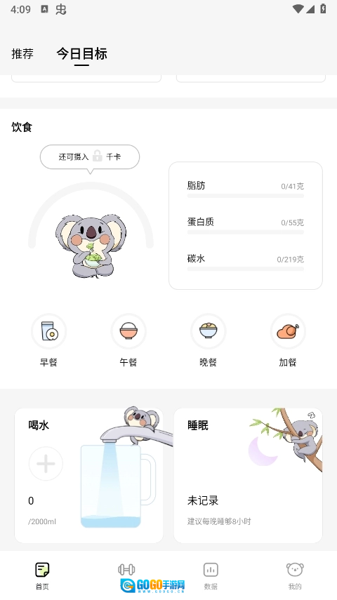 3、在首页就能看到今日目标,还能记录你每天的饮食量和运动量呢。