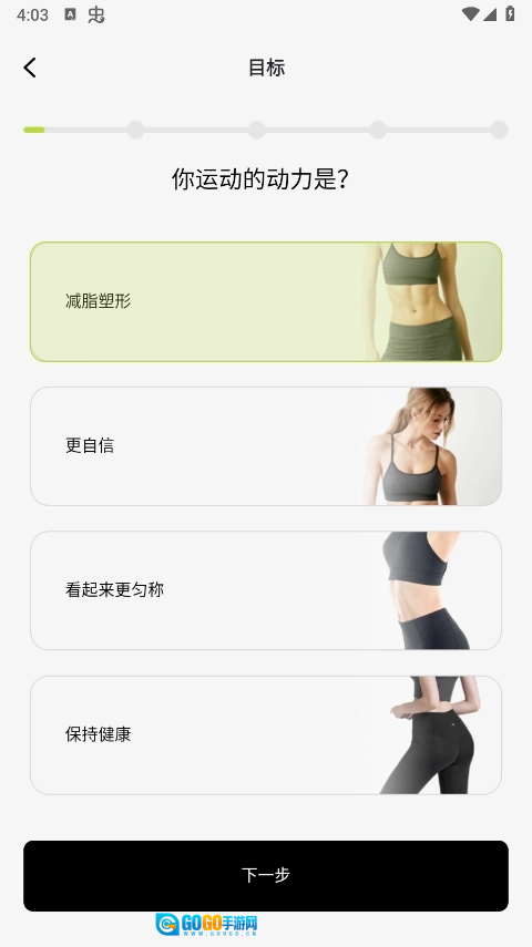 1、安装该应用的最新版本,打开后输入你的身体体脂数据及目标等信息。
