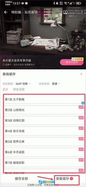 3、接着再选择你要集数即可,完成后点击查看缓存可以找到我们完成的视频