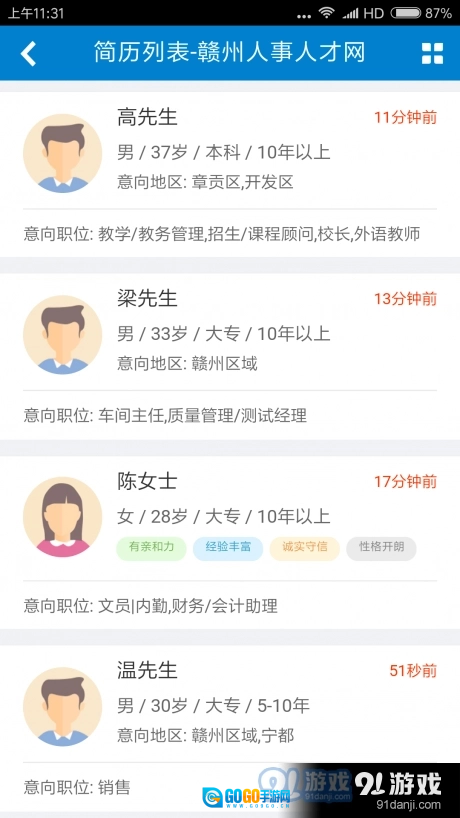 在赣州人事人才网平台上,所有求职信息都能直接在线查看,求职动态尽在掌握。
