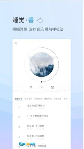 1.深夜难眠:针对由焦虑、压力等情绪困扰引发失眠的用户,小睡眠备有多样的助眠音乐与冥想训练,助力用户舒缓心绪,迅速入眠。