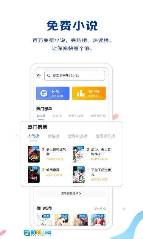 百万免费小说,完结榜、热读榜,让你畅快看个够。