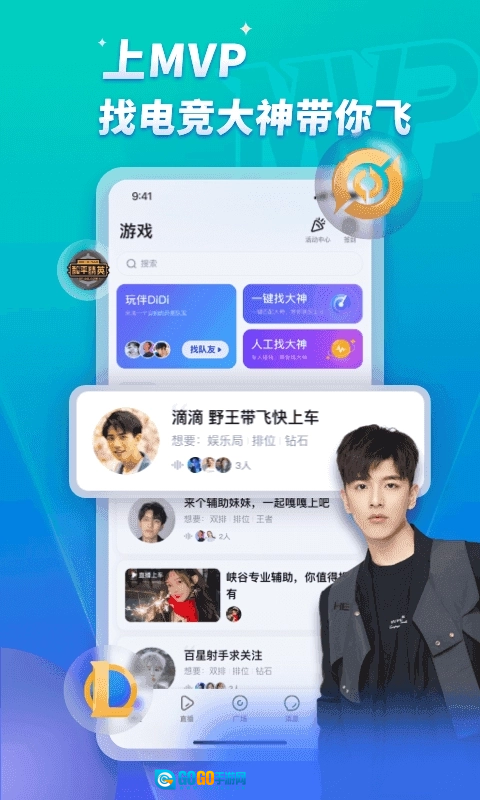 1、手游吃鸡高手、排位赛最强王者、LOL游戏大神……各类热门游戏的顶尖玩家任你选择,让你在对局中畅快取胜、尽情享受游戏乐趣。