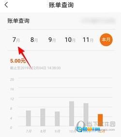 4、进入账单查询页面后,系统默认显示的是本月账单。要是想查看其他月份的账单,点击页面上方的月份选项即可。