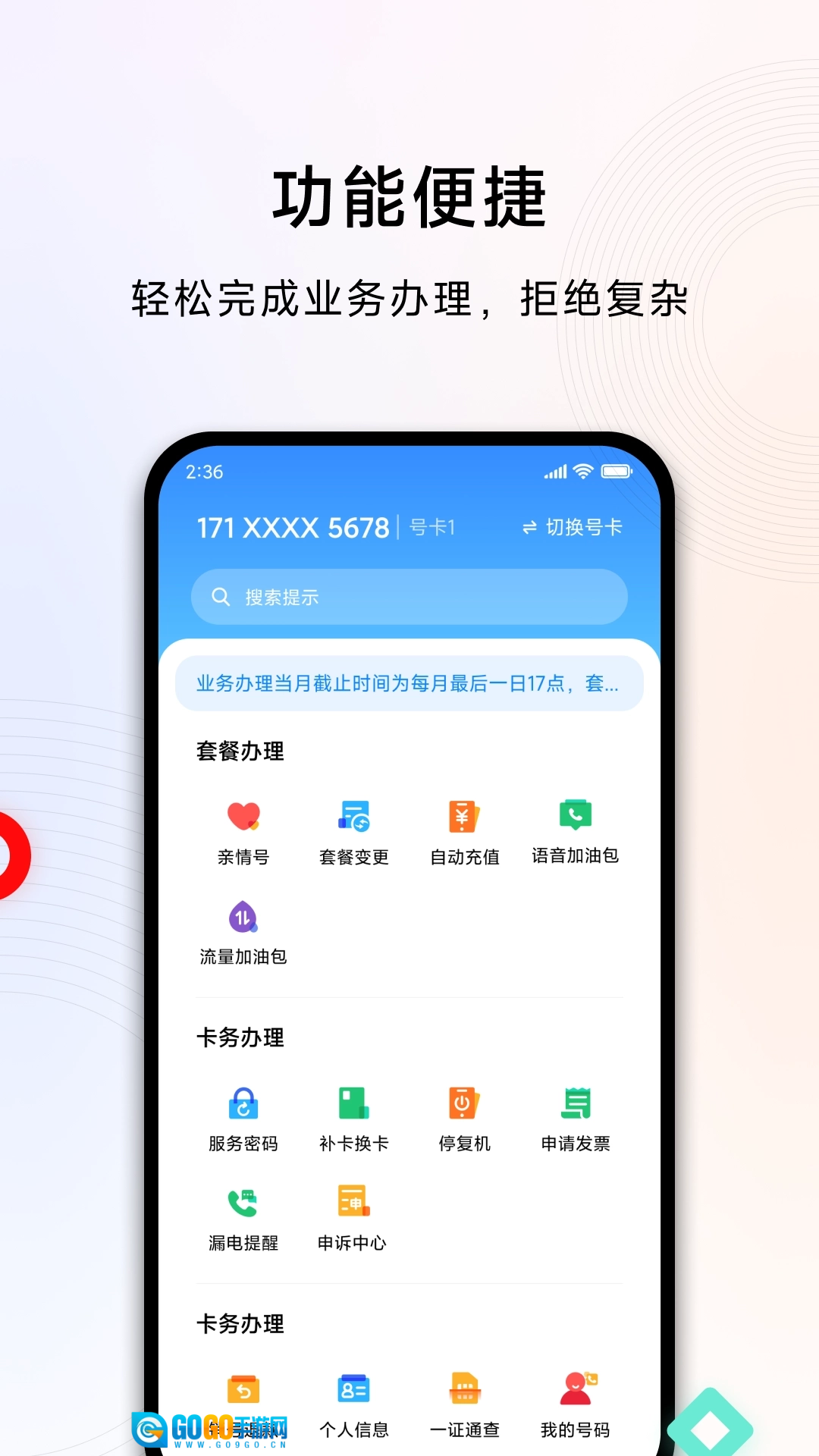4、功能强大的网上营业厅,无论是充话费、查询流量还是办理业务,一个App就能全部搞定。
