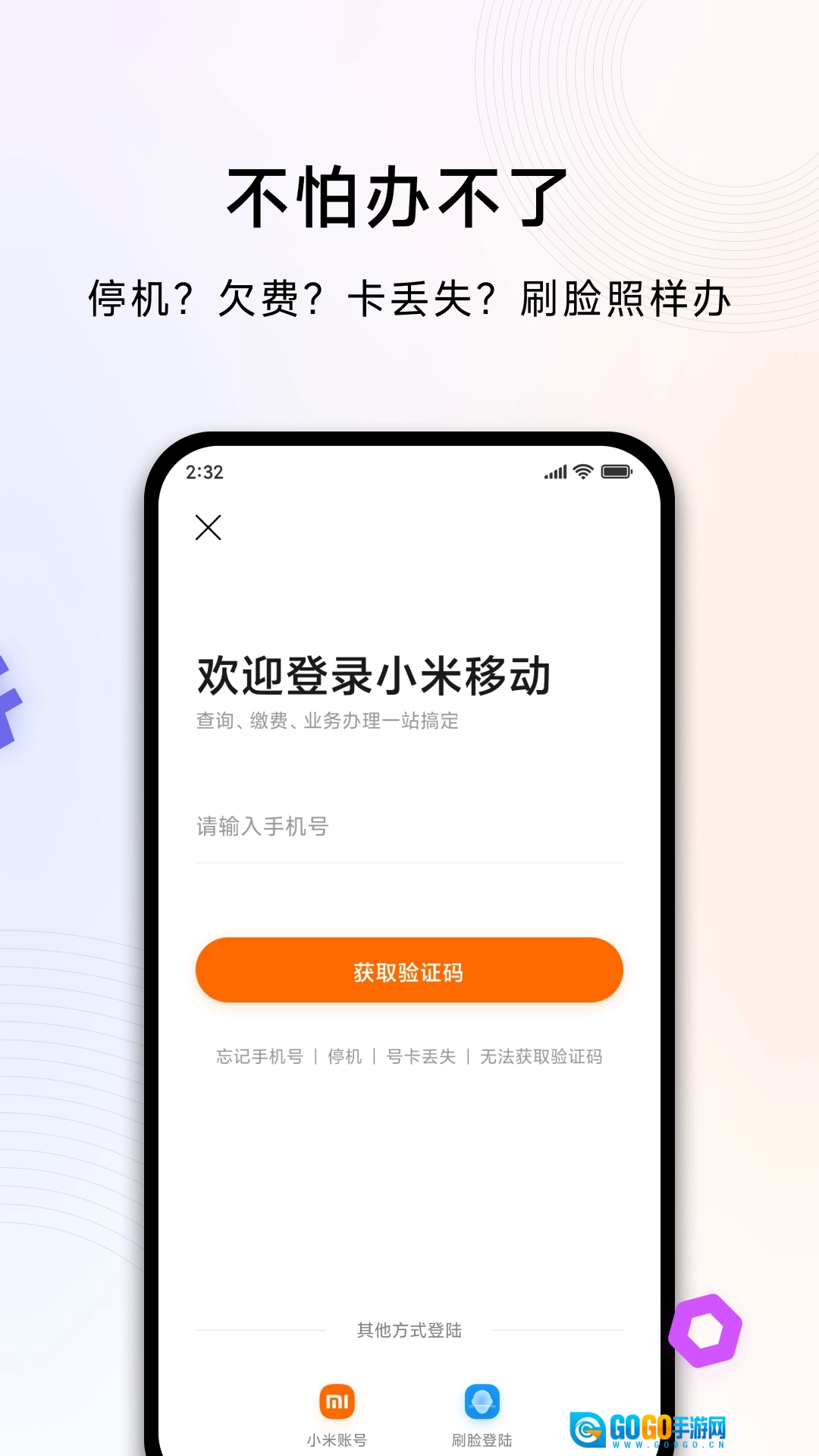 1、先把手机连接到网络,接着打开“小米移动”应用,然后登录你自己的小米帐号。
