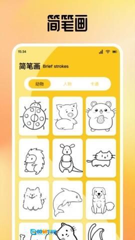 2、包含大量简笔画模板,且按照动物、人物、卡通等类别进行分类,方便你依据个人喜好挑选临摹,助力绘画技能的有效提升。
