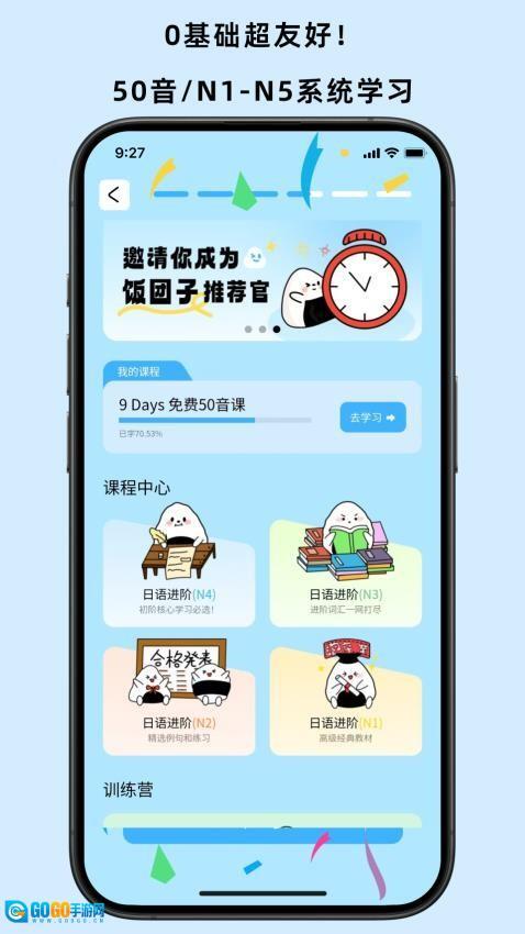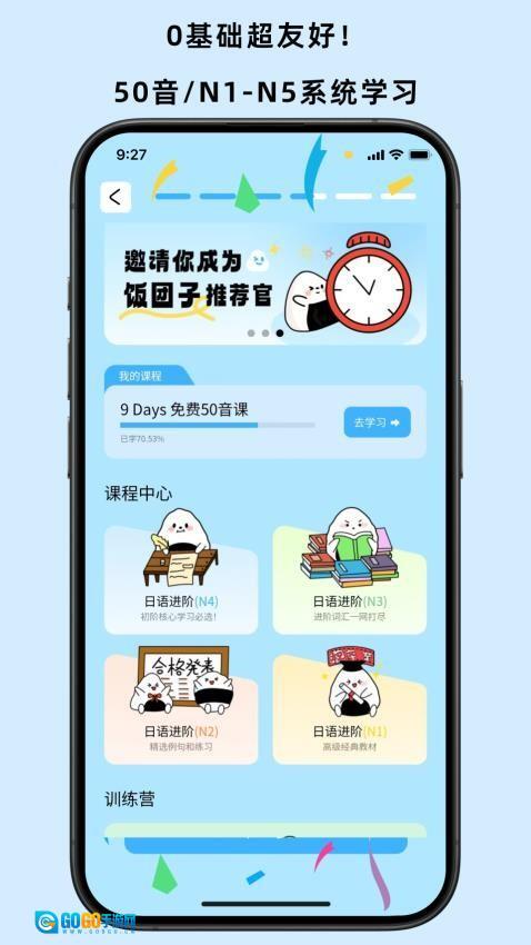 1、打开后,首页提供系统化的日语进阶课程,从入门到精通分级学习。